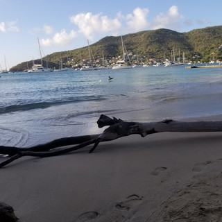 Navigation variée, mais cool. Nous avons alterné entre la petole derrière les îles de ste lucie et st Vincent, et les zones d'accélération entre les 2! Une petite frayeur ou deux avec des bateaux qui sont passés assez près de nous, mais contents d'arriver au matin sur l'île de Becquia pour un premier arrêt dans ce magnifique ensemble d'îles!!