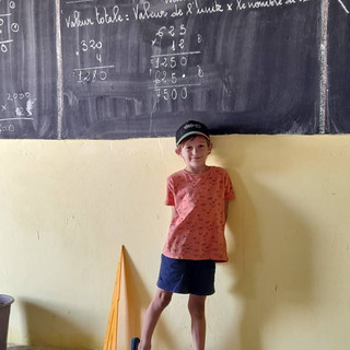 Titou lui s'adapte comme.un chef! On est super fier de lui. Il se ballade tous seul, se fait un pote , participe activement aux travaux, et a développé un vrai lien d'amitié avec l'instit Pape, notre contact principal ici.il s epanouit de jour en jour ici. C'est un vrai bonheur de le voir évoluer.