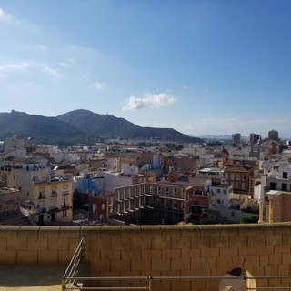 En fait nous sommes en plein début de festival historique (fiesta de cartaginesis y romains, reproduction de combats entre les peuples dans toute la ville, tous le monde est déguisé mais pour le moment ils boivent des coups au bar😅). Ca ne commande qu'à 21h mais nous sommes tellement crevés après la navigation de nuit qu'on finit par trouver un bar à tapas qui veut bien nous servir à 19h et on rentre dodo. Magnifique feu d'artifice depuis le bateau par contre on a pas tour perdu!