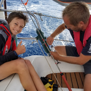 C'est décidé, au départ d'Almerina: nous irons à Ceuta! Mettre un premier pied sur le continent africain, ça nous plaît trop! Et puis ça sera top pour se préparer au passage du détroit! Nous partons donc motivés, et même si la mer est bien formée, il ya du vent, on.va tracer c'est cool. Titouan pêche son premier maquereau , nous avons même droit à un balai de dauphins en soirée, magnifique, qui nous scotche un moment! Ils nous accompagneront même dans la nuit ça me remontera le moral 😅! Juju enchaîne son quart, les conditions empirent: plus de vent mais mer croisée toujours. Le bateau bouge dans tous les sens...il modifie Le Cap en permanence pour trouver un semblant de confort mais vers 3h du matin, le capitaine décide d'aller sur Estepona. La mer ne veut pas qu'on traverse, et il faut rester humble... arrivée rincés à Estepona, mais contents de pouvoir se reposer. Les enfants ont bien dormi bizarrement, nous moins!