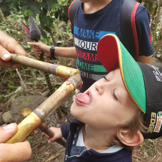 En tout cas ça ne les empêche pas de vivre pleinement ce moment. Pas d'école pendant 3 jours, mais découverte de la canne à sucre (et dégustation de notre premier rhum du voyage !!), de la provenance et fabrication du café, de la fleur de bananier... Un avant gout des Antilles on dirait!?
